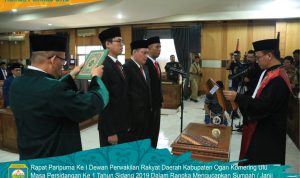 Rapat Paripurna Ke-I DPRD Kab OKU Masa Persidangan Ke-I Tahun 2019 Dalam Rangka Pengucapan Sumpah/Janji Ketua Dan Wakil Ketua DPRD Kab OKU Masa Jabatan 2019 – 2024 Di Ruang Rapat Paripurna DPRD Kab OKU (Senin, 16/09/2019).