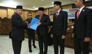 Penyerahan SK oleh Bupati Oku ke tiga pimpinan DPR