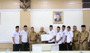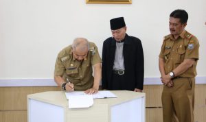 Koran.one.com.Bupati OKU Drs. H. Kuryana Azis Menandatangani Naskah Perjanjian Hibah Daerah (NPHD) Bersama KPU, di Ruang Rapat Bina Praja Pemkab OKU (Senin, 14 Oktober 2019).