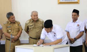 Ketua KPU oku Naning wijaya menandai tangani kepakatan NPDH