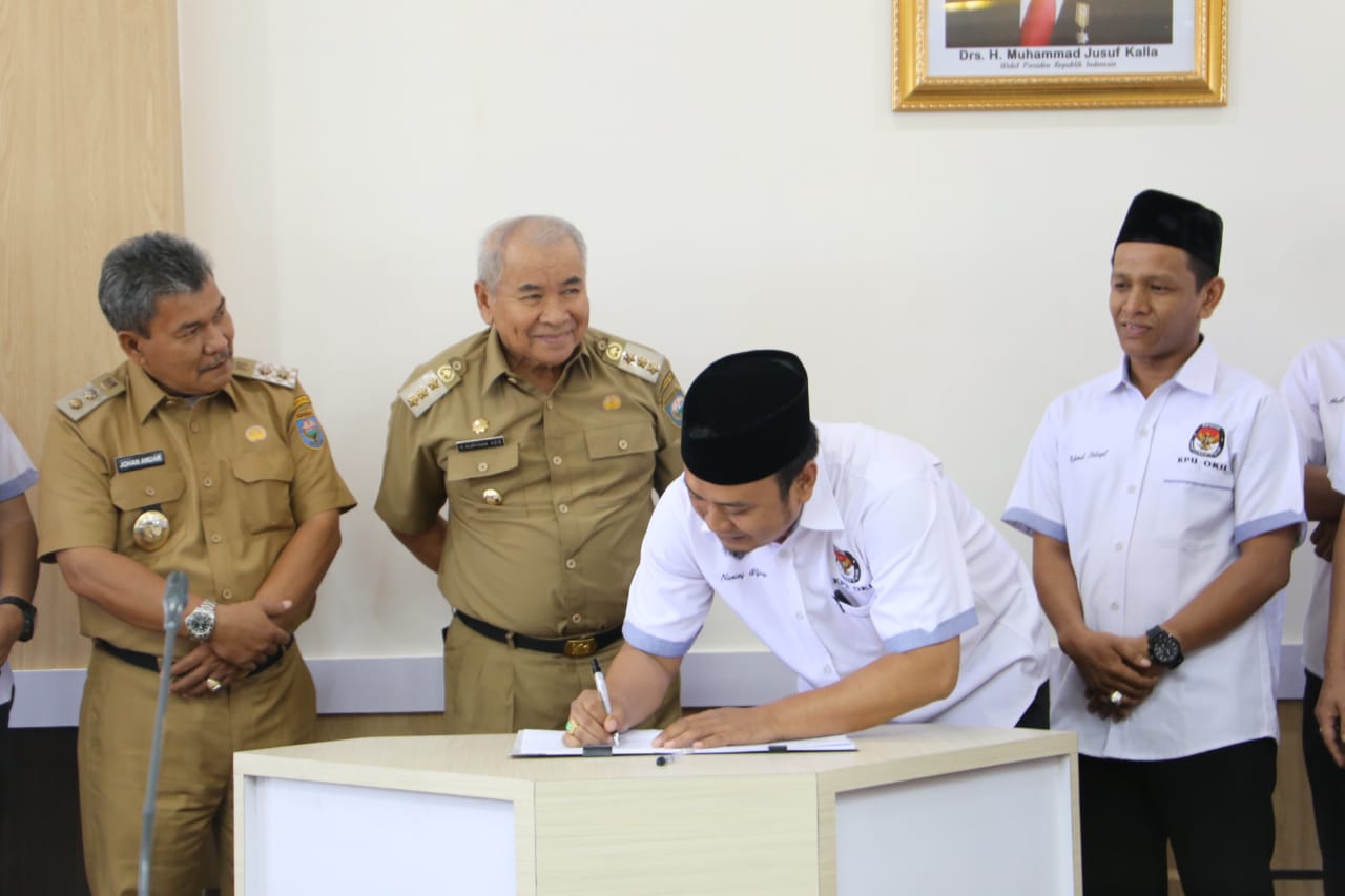 Ketua KPU oku Naning wijaya menandai tangani kepakatan NPDH