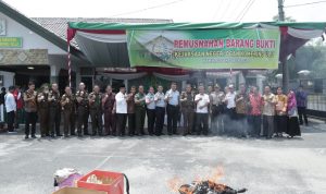 Kepala Kejaksaan Negeri (Kajari) OKU Bayu Pramesti, SH., mengatakan pemusnahan barang bukti adalah untuk melaksanakan eksekusi atau pelaksanaan putusan pengadilan yang telah memiliki kekuatan hukum tetap, serta pengamanan dan mencegah penyalahgunaan barang bukti yang ada di kantor Kejaksaan Negeri OKU.
