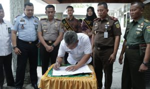 Selanjutnya penandatanganan berita acara dilakukan Oleh Wabup OKU, Kepala Kejaksaan Negeri OKU, Kapolres OKU, Kodim, dan disaksikan oleh pejabat lainnya.