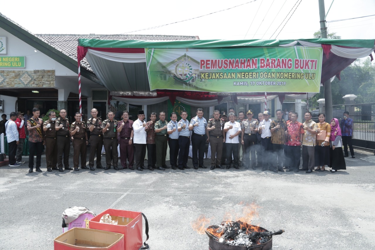 Pada kesempatan ini dilakukan pemusnahan barang bukti oleh Wabup OKU, Kapolres, Kodim, Forkompinda, Kepala Kejaksaan Negeri OKU, dan pejabat lainnya.