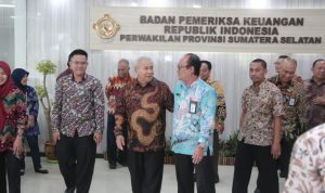 Bupati Oku Drs H .Kuryana Aziz sedang berbincang dgn pejabat BPK