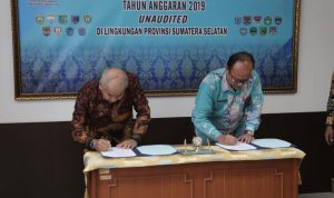 Bupati Oku dan perwkl BPK Sumsel sama sama menanda tangani naskah