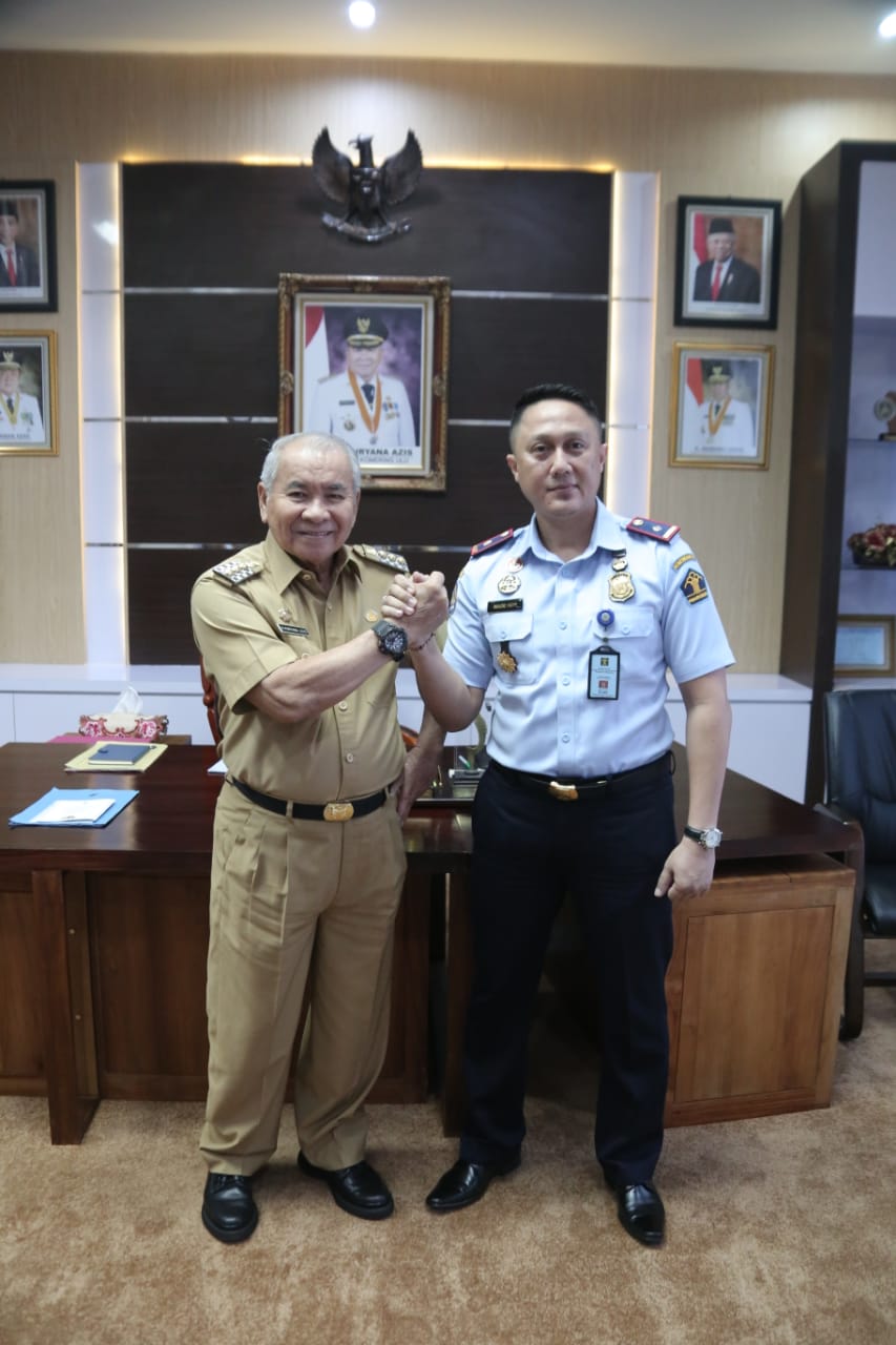 Bupati OKU Drs. H. Kuryana Azis didampingi Asisten III H. Romson Fitri, S.H., M.H., S.E. Kepala Dinas Kominfo Priyatno Darmadi, S.Sos., M.Si. dan Kepala BKPSDM Mirdaili, S.STP., M.Si., mengucapkan selamat datang dan selamat menjalankan tugas di Kab OKU sebagai kepala Imigrasi kelas II Muara Enim dan kepala UKK Imigrasi Kab OKU.