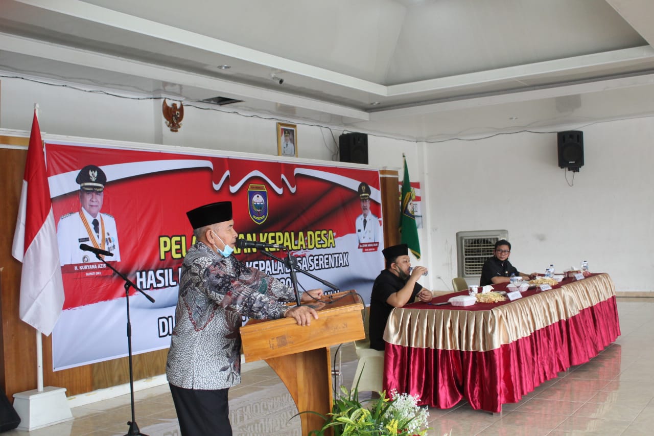 Bupati OKU Drs. H. Kuryana Azis menyampaikan selamat menjabat dan segera menyesuaikan diri. Kerja seorang kades bukan hanya di rumah, tapi tetap bergerak mengkoordinasi perangkatnya supaya masyarakat hidup tentram dan sejahtera.