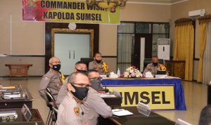 Catur Prasetya Mapolda Sumsel berlangsung acara commander wish Kapolda Sumsel yang dihadiri oleh Wakapolda Sumsel Brigjen Pol Rudi Setiawan, SIK, SH, MH., Irwasda Sumsel Kombes Pol Drs. Dody Marsidy, M.Hum, CfrA, Para Pejabat Utama Polda Sumsel dan Kapolrestabes Palembang sedangkan Kapolres Jajaran Polda Sumsel menyaksikan acara Commander wish Kapolda Sumsel ini melalui Video Conference di Mako masing-masing mengingat saat ini kita sedang dalam keadaan Pandemi Covid-19.Pada kesempatan ini pula Irjen Pol Prof. Dr. Eko Indra Heri, S.,MM menyampaikan beberapa program kerja dan prioritas beliau menjabat sebagai Kapolda Sumsel. Ada 7 Prioritas yg beliau canangkan yaitu: