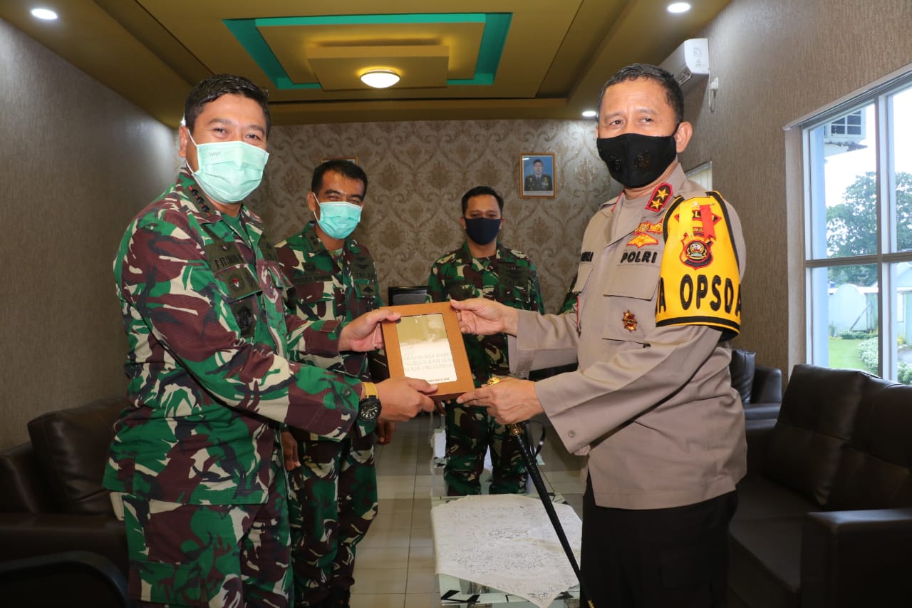 Kapolda menyerahkan buku hasil karyanya dengan judul “Paradigma Baru Pengelolaan SDM dalam Organisasi”. Sedangkan Danlanud menyerahkan replika Pesawat Udara.
