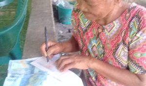 “Saya diberikan Rp 600,000, setelah saya terima, saya selaku warga dengan ikhlas memberikan uang tersebut sebesar 200 ribu untuk warga yang belum menerima bantuan langsung tunai, tapi hari ini pihak pemerintah desa sukaraja sudah mengembalikanya lagi