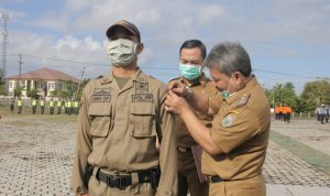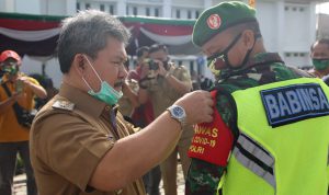 Wakil Bupati OKU Pimpin Apel Gelar Pasukan Penegakan Disiplin Protokol Kesehatan Dalam Rangka Pencegahan Penyebaran Covid-19 di Kabupaten OKU Bertempat di Halaman Pemkab OKU, Selasa (02/06/2020).