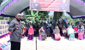 Kegiatan Tali Asih dan Bakti Sosial HUT Bhayangkara ke-74 ini dapat memperat silahturahmi kita dalam rangka menciptakan situasi dan kondisi masyarakat yang aman kondusif, nyaman tentram dan damai. Marilah kita bersama untuk saling menjaga agar tidak terjadinya kebakaran hutan/lahan ujarnya.