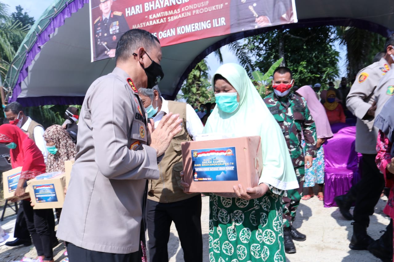 SUMSEL KORAN ONE.COM Dalam rangka HUT Bhayangkara ke-74 Kapolda Sumsel Irjen Pol. Prof. Dr. Eko Indra Heri S.,M M, Minggu (14/6) melaksanakan Bakti Sosial di Pematang Panggang kecamatan Mesuji OKI.
