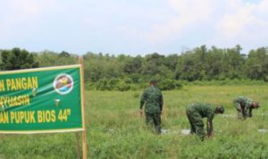 Banyuasin,Koran-one- Mewabahnya virus Covid-19 di Negara belahan dunia bahkan Indonesia tidak saja berimbas kepada perkembangan ekonomi dan sosial bahkan pangan pun turut menjadi imbas mewabahnya virus Covid-19. Untuk mengantisipasi krisis pangan di tengah mewabahnya virus Corona tersebut Kodim 0430/Banyuasin melakukan kegiatan ketahanan pangan, Selasa (16/6)