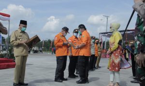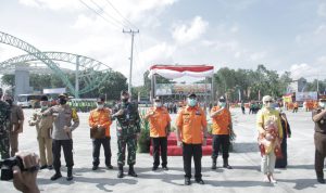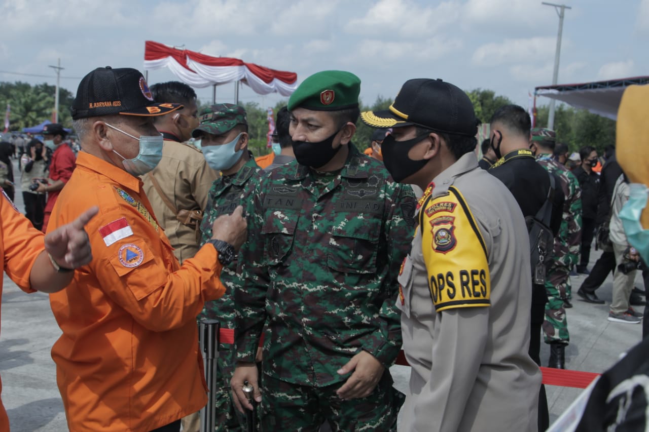 Bupati OKU Drs. H. Kuryana Azis Bersama Kapolres dan Dandim 0403 OKU Menghadiri Pelaksanaan Apel Gelar Pasukan Kesiapsiagaan Personil dan Peralatan Penanggulangan Kebakaran Hutan dan Lahan Provinsi Sumsel Tahun 2020 Bertempat Di Lapangan Kebun Raya Sriwijaya Ogan Ilir (Selasa,30/06/2020).