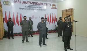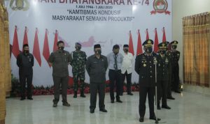 Upacara Peringatan Hari Ulang Tahun (HUT) Bhayangkara Ke-74 dilakukan secara virtual atau live streaming dan diselenggarakan secara sederhana karena mengingat situasi pandemi Covid-19 saat ini.