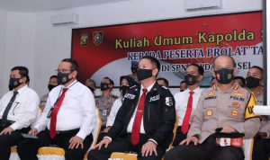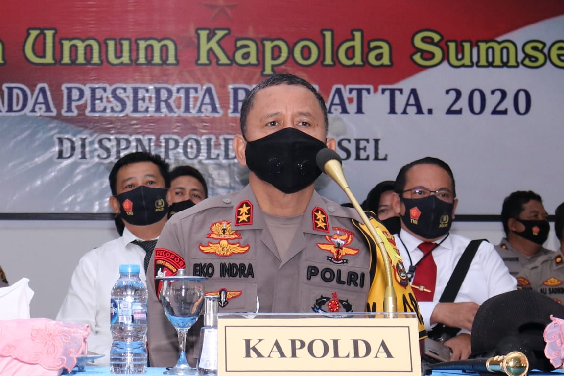 Palembang. Koran one.com.Kapolda Sumsel Irjen Pol. Prof. Dr. Eko Indra Heri S., MM melaksanakan kegiatan Pembukaan Pelatihan Fungsi Polri Sekaligus Memberikan Kuliah Umum kepada Peserta Prolat Polda Sumsel TA. 2020 bertempat di Gedung Serasan Sekate SPN Polda Sumsel, Senin (03/08).