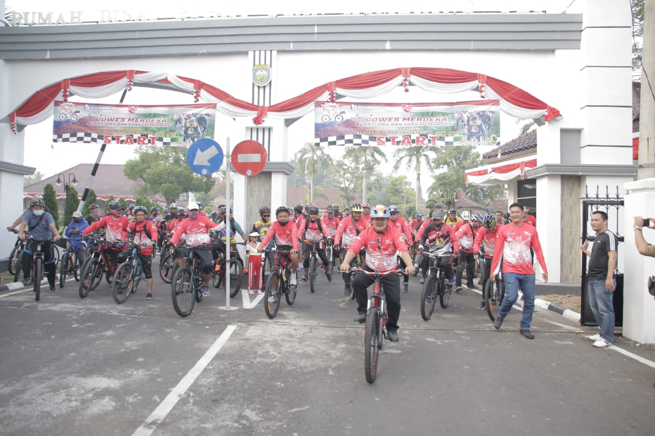 Gowes Merdeka Forkopimda OKU Bersama Komunitas Sepeda Dalam Rangka HUT Ke-75 Kemerdekaan RI Tahun 2020, Minggu (09/08/2020).
