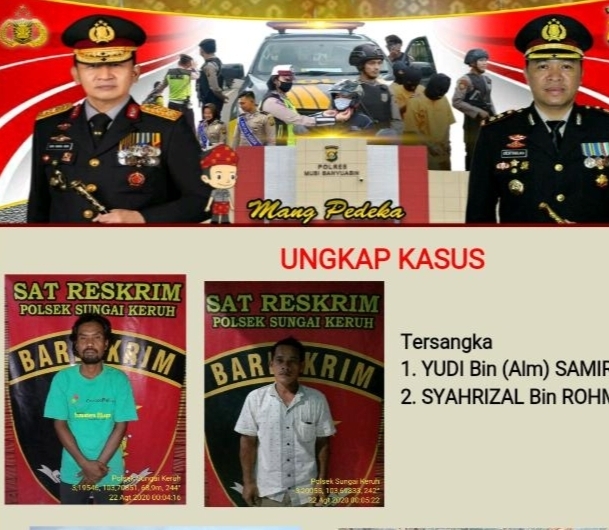 Kapolres Musi Banyuasin AKBP ERLIN TANGJAYA, SH, S.ik didampingi Kapolsek Sungai Keruh IPTU DARMAWANSYAH, SH, MH membenarkan penangkapan tersebut yang terjadi Jumat kemaren.