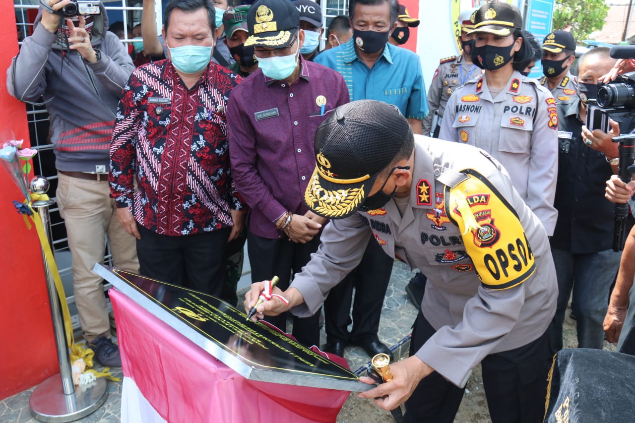 Kapolda Sumsel Irjen Pol Dr.Eko Indra Heri S MM didampingi Dir Binmas Kombes Pol Heru Trisasono Sik Msi ,Kabid Humas Polda Sumsel Kombes Pol Supriadi MMdan Kapolres Banyuasin Akbp Danny Sianipar Sik SH menghadiri dan meresmikan Kampung Tangkal Covid 19 Polres Banyuasin ,dikelurahan kenten dan pengukuhan relawan peduli lingkungan Jumat 28/08/2020.