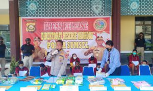 Direktorat Reserse Narkoba Polda Sumsel melaksanakan press release ungkap kasus narkoba yang dipimpin langsung oleh Kapolda Sumsel Irjen Pol Prof Dr Eko Indra Heri S, MM didampingi Direktur Ditres Narkoba Polda Sumsel Kombes Pol Heri Istu dan Kabid Humas Kombes Pol Supriadi, MM. Selasa (15/09/2020).