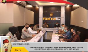 Dalam sambutannya Kapolda sumsel Irjen Pol.Dr Eko Indra Heri S MM mengucapkan terimakasih atas kedatangan Rektor unsri beserta rombongan semoga silahturrahmi ini terjalin erat antara Polda Sumsel.dan Universitas Sriwijaya dan semoga inovasi dari Rektor dan civitas Akademika Unsri dapat ikut mendukung program program Polri khususnya Sumber Daya Manusia Polda Sumsel,Pungkas Jenderal Pelopor Mang Pedeka ini,sementara itu saat dihubungi Rektor Unsri Prof Dr Ir Anissagaf MSCE,mengatakan audensi ini Pertama adalah.Sebagai kunjungan balasan kepada Kapolda sumsel Jalan santai sehat beberapa waktu yang lalu dikampus Unsri Inderalaya Ogan Ilir tgl 30/08/2020,yang Kedua Kami memberikan Beasiswa kepada Anggota Polri /Pns Polda Sumsel yang berprestasi yang ingin kuliah diUnsri dengan membebaskan Biaya UKT Program S2 dan S3.