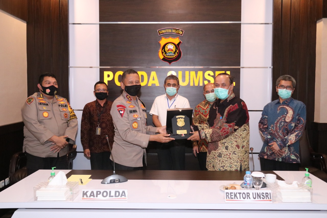 Kapolda Sumsel Irjen Pol Prof Dr.Eko Indra Heri S MM didampingi PJU Poda Sumsel Menerima Audensi Rektor Universitas Sriwijaya Prof Dr Ir Anissagaff MSCE beserta Pembantu Rektor,Dekan serta Civitas Akademika Unsri diruang Promoter LT II. Senin 14/09/2020.