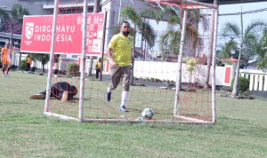 Kapolda Sumsel Irjen Pol Prof. Dr. Eko Indra Heri S., MM melaksanakan kegiatan Olahraga Bersama dengan Personel Polrestabes Palembang dan Futsal di Mapolrestabes Palembang, Jum’at (25/09).