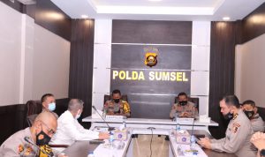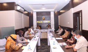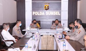 Prof. Dr. Eko Indra Heri S., MM menerima tim penelitian Efektifitas Implementasi Sistem Keamanan Objek Vital Nasional dan Objek Tertentu Pasca Pemilu Tahun 2019 dan tim evakuasi standarisasi sistem pengadaan distribusi dan peruntukan senjata apo pistol di lingkungan Polri wilayah hukum Polda Sumsel bertempat di Ruang Promoter lantai II Mapolda Sumsel, (02/11).