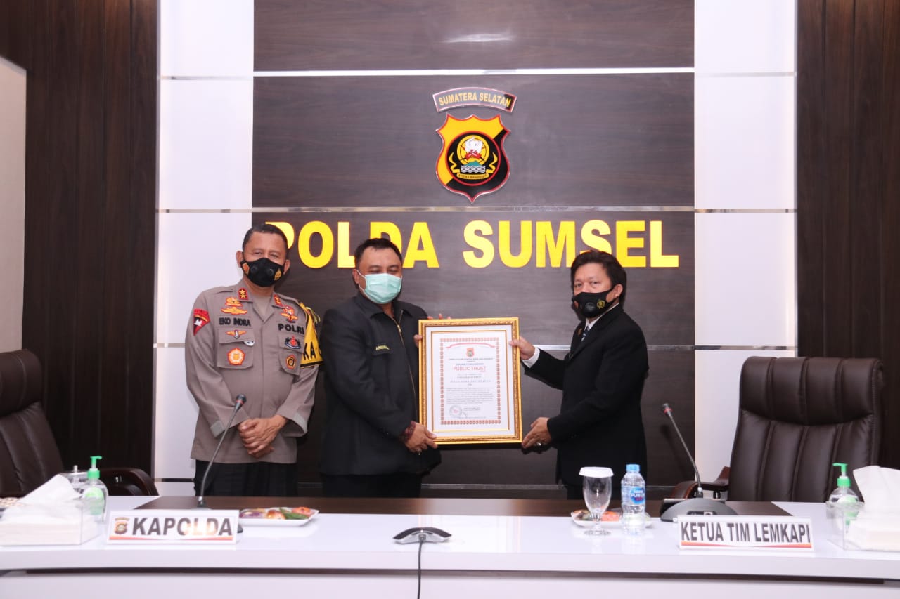 KAPOLDA SUMSEL TERIMA DIREKTUR LEMKAPI PEMBERIAN PENGHARGAAN GERAI SDM MANG PADEKA ONE STOP SERVICE POLDA