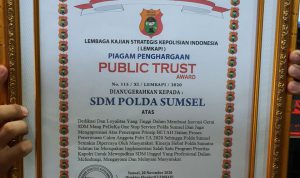 Atas Dedikasi dan loyalitas yang tinggi dalam membuat Inovasi *Gerai SDM Mang PeDeKa One Stop Service Polda Sumse.* dan juga mengapresiasi atas penerapan Prinsip BETAH dalam Proses Penerimaan Calon Anggota Polri TA. 2020 sehingga Polda Sumsel semakin dipercaya oleh Masyarakat.