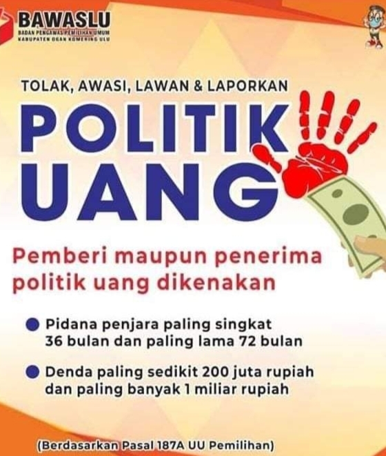 Koran One,Com Bukan menjadi rahasia umum,tentang akan terjadi Politik uang pilkada oku 09 Desember 2020, sehingga riuk pikuk di kalangan masyarakat membicarakan terkait pembagian uang kepada warga, yang sebut istilah serangan fajar..