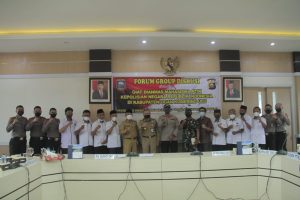 Selanjutnya Kapolres OKU AKBP. Danu Agus Purnomo, S.I.K., Menyampaikan berkaitan dengan tema yang diangkat tentunya banyak hambatan dan tantangan yang dialami pada saat implementasi. Dalam hal ini Polres OKU bersinergi bersama Pemerintah Daerah melalui Dinas Kesehatan melakukan Komunikasi bersama lintas agama yang ada di Kabupaten OKU. Dari hasil komunikasi tersebut adapun upaya yang telah dilakukan antara lain yaitu melaksanakan vaksinasi dengan metode jemput bola dan melaksanakan gebyar vaksinasi.