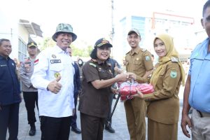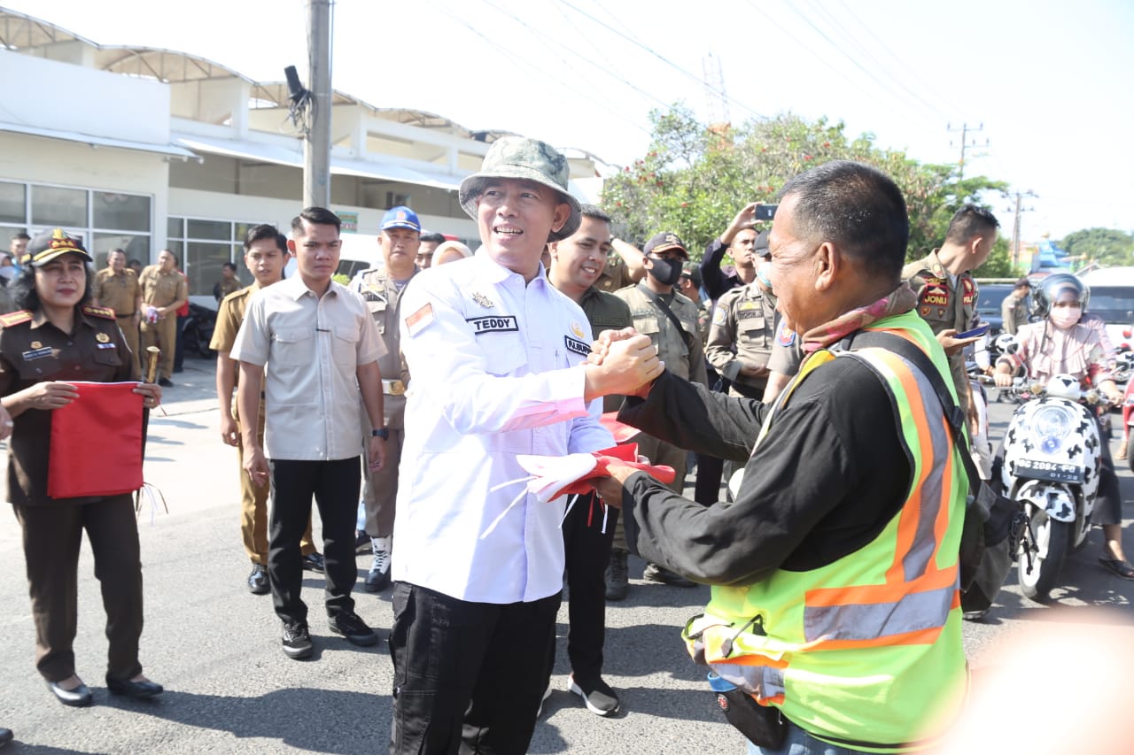 Penjabat Bupati OKU H. Teddy Meilwansyah Bersama Forkopimda OKU Secara Simbolis Membagikan Bendera Merah Putih Dalam Rangka KegiatanMenyemarakkan Hari Ulang Tahun Ke-77Kemerdekaan Republik Indonesia Tahun2022 di Kabupaten OKU Bertempat di Tribun Taman Kota Baturaja. (Selasa, 9/08/2022).