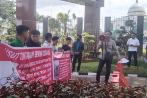 (KO)•Com-Lembaga Swadaya Masyarakat (LSM) Pemerhati Organisasi Sosial dan Ekonomi Republik Indonesia (POSE RI) kembali menggelar aksi damai di depan Kantor Kejaksaan Tinggi (Kejati) Sumatera Selatan (Sumsel), Rabu (14/12/22).