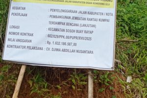 Dan untuk dana lanjutan pembangunan jembatan Rantau kumpai tahun 2025 telah dilanjutkan oleh CV DJWA ABDILLAH NUSANTARA