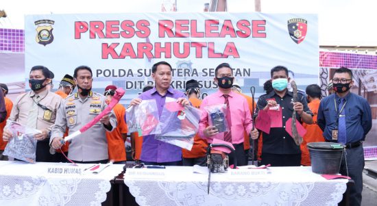 Palembang. Koran one.com. Direktorat Reserse Kriminal Khusus Polda Sumatra Selatan menangkap 22 Orang Tersangka yang sengaja membakar lahan sehingga menimbulkan Kebakaran