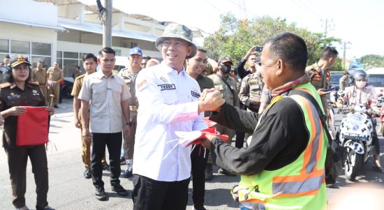 Penjabat Bupati OKU H. Teddy Meilwansyah Bersama Forkopimda OKU Secara Simbolis Membagikan Bendera Merah Putih Dalam Rangka KegiatanMenyemarakkan Hari Ulang Tahun Ke-77Kemerdekaan