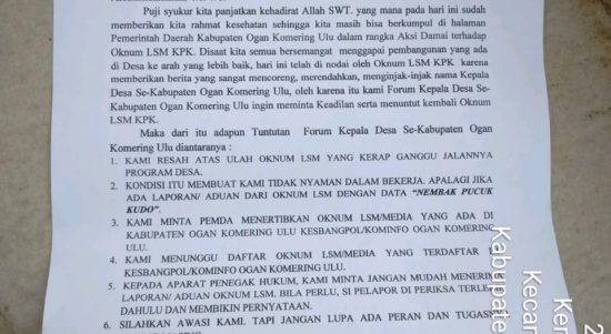 {KO}-Com.Aksi Forum Kades Se Kab. OKU Tuding LSM Meresahkan Dihalaman Pemkab OKU Menjunukan Kebodohan Menutupi Kedok Kesalahan, Menyalahkan Suatu Kumpulan / Organisasi