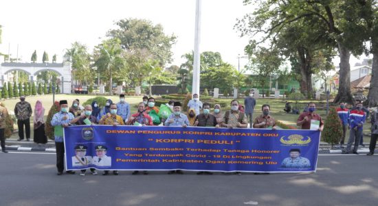 Koran One Com . Penyerahan Secara Simbolis Bantuan Sembako Dari KORPRI Peduli Kepada Tenaga Honorer Dilingkungan Pemkab OKU Yang Terdampak Covid-19 Bertempat