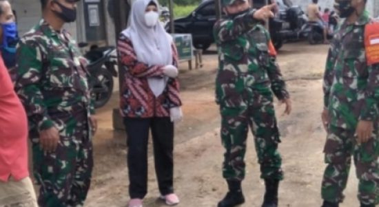 Banyuasin,- Koramil 430-04/Talang Kelapa beserta Muspika setempat menggelar Penegakan Disiplin Protokol Kesehatan (Gakplin Protkes) Covid-19 di Pasar Tiga Putri Kec. Talang Kelapa