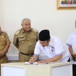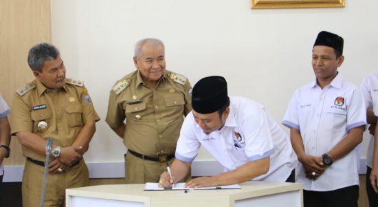 Koran.one.com.Bupati OKU Drs. H. Kuryana Azis Menandatangani Naskah Perjanjian Hibah Daerah (NPHD) Bersama KPU, di Ruang Rapat Bina Praja Pemkab OKU (Senin,