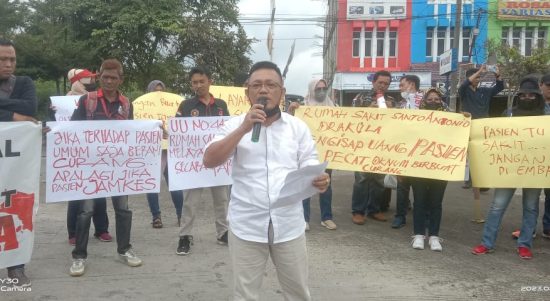 {KO}•Com,Ratusan massa menyuruduk gedung rumah sakit santo antonio yang tergabung di aliansi masyarakat peduli OKU (ampoku) bersama lembaga swadaya masyarakat (LSM) mendatangi