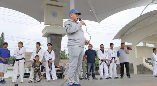 KORAN ONE.COM. Bupati OKU Menyerahkan Sertifikat Ujian Kenaikkan Tingkat (UKT) Kepada Atlet Taek Won Do di Tribun Taman Kota, Minggu (15/03/2020). Prestasi
