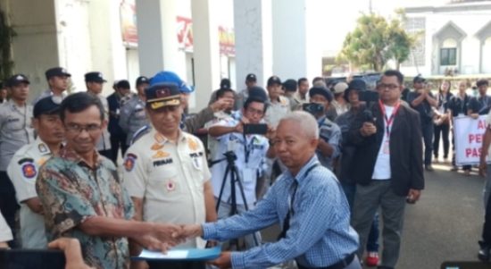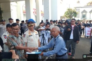 (KO}•Com+Ratusan pedagang menggelar aksi damai dengan mendatangi Kantor Pemerintah Kabupaten Ogan Komering Ulu (OKU), Kamis (16/4/2026). Mereka menuntut pencopotan jajaran pimpinan Perumda