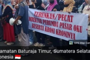 “Copot Direktur Perumda Pasar dan jajarannya, serta Kepala Unit Pasar Lama Baturaja,” menjadi tuntutan utama yang disuarakan massa.
